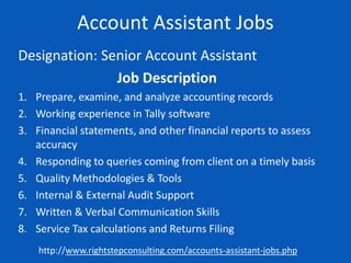 Accounts Assistant - Full Time or 4 days pro rata - London S. Accounts Assistant Jobs Near Me LoginAsk is here to help you access Accounts Assistant. Accounting Assistant FT WatsonDwyer Inc.